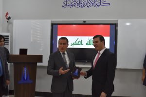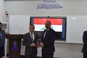 وكرم السيد رئيس الجامعة السيد نائب رئيس دوان الرقابة المالية الاتحادي والسيد رئيس المصرف العراقي للتجارة بدرع الابداع والتميز.