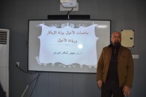 برعاية السيد رئيس الجامعة الأستاذ الدكتور تحسين حسين مبارك المحترم وبإشراف السيد عميد كلية الادارة والاقتصاد الأستاذ المساعد الدكتور نزار معن عبد الكريم المحترم أقامت وحدة حاضنات الأعمال وإدارة البيئة مع قسم الإدارة العامة دورة تدريبية بعنوان (حاضنات الأعمال بوابة الابتكار وريادة الأعمال) حاضر فيها الأستاذ الدكتور حيدر شاكر نوري.