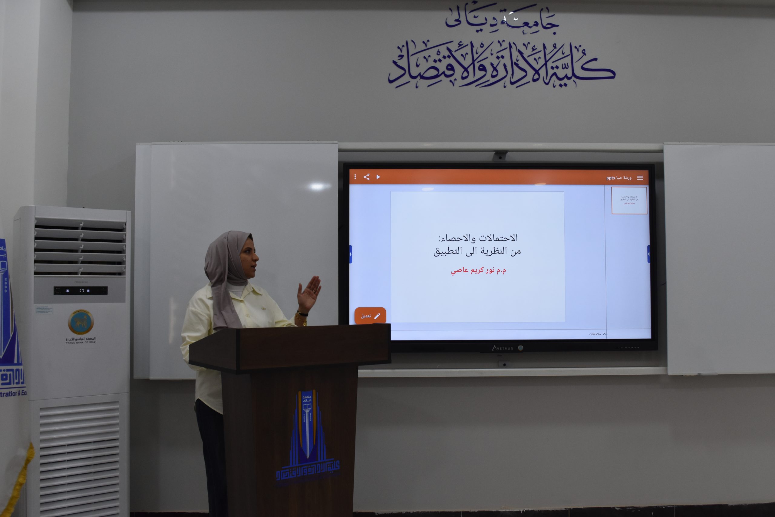 أقام قسم الاقتصاد في كلية الإدارة والاقتصاد بجامعة ديالى وبالتعاون مع وشعبة التعليم المستمر دورة تدريبية بعنوان (الاحتمالات والإحصاء: من النظرية إلى التطبيق) حاضر فيها المدرس المساعد نور كريم عاصي