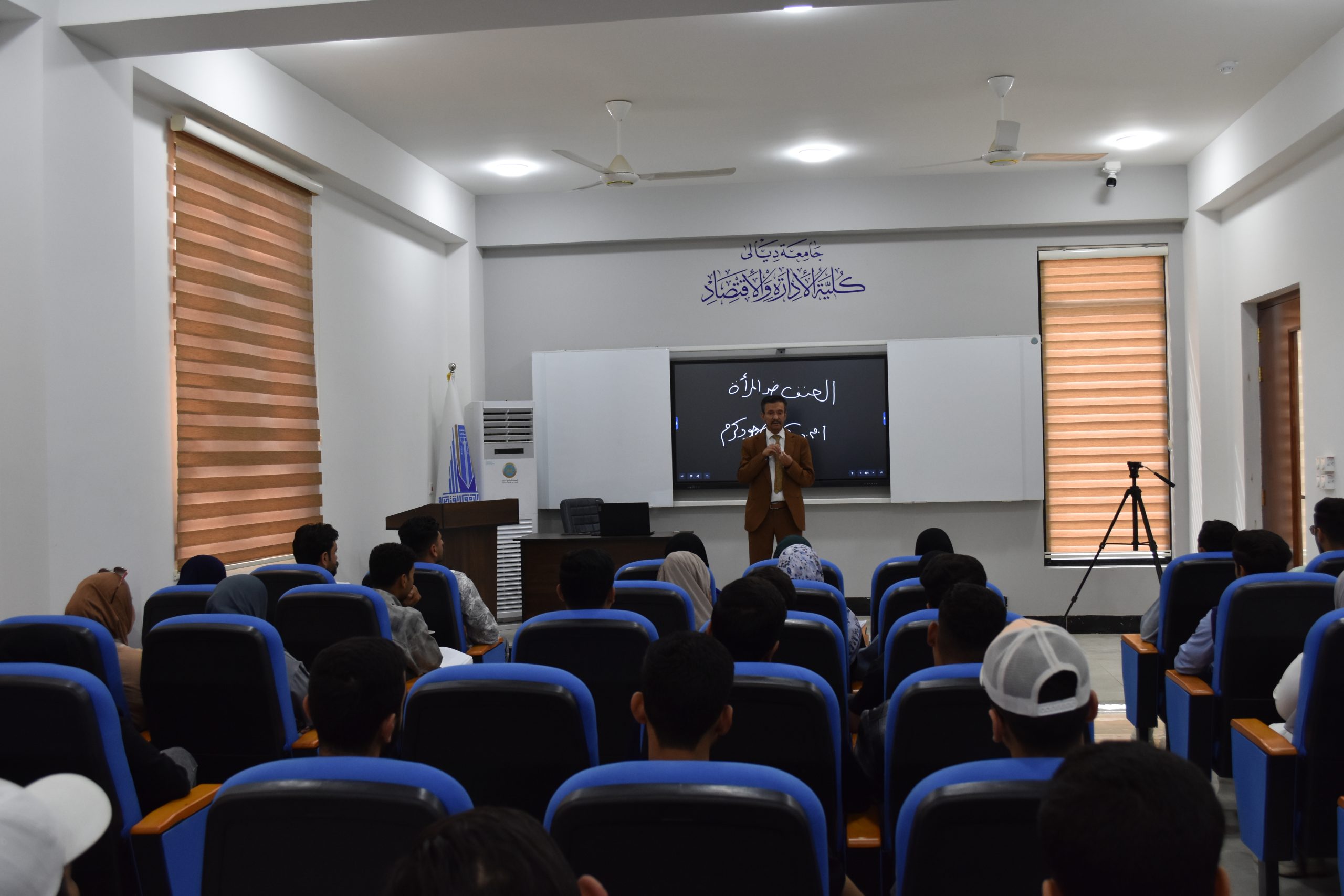 اقام قسم الادارة العامة في كلية الإدارة والاقتصاد بجامعة ديالى وبالتعاون مع شعبة التعليم المستمر ندوة علمية بعنوان (العنف الارهابي واثره على المرأة) حاضر فيها الأستاذ المساعد الدكتور كريم صيهود كرم
