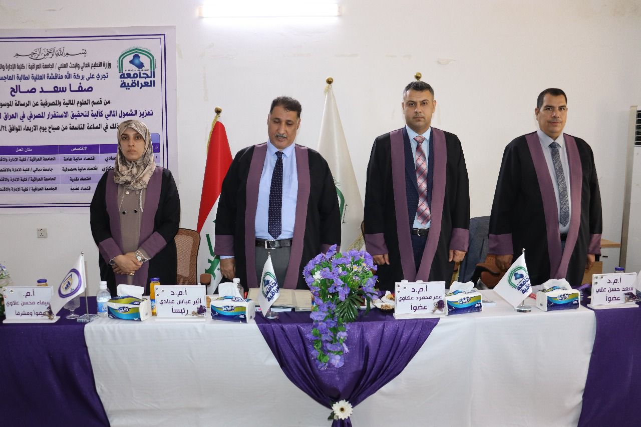 شارك التدريسي في قسم الاقتصاد الأستاذ المساعد الدكتور عمر محمود عكاوي في عضوية مناقشة طالبة الماجستير (صفا سعد صالح) عن رسالتها الموسومة (تعزيز الشمول المالي كآلية لتحقيق الاستقرار المصرفي في العراق للمدة ٢٠١٣ _ ٢٠٢٣) في قسم العلوم …