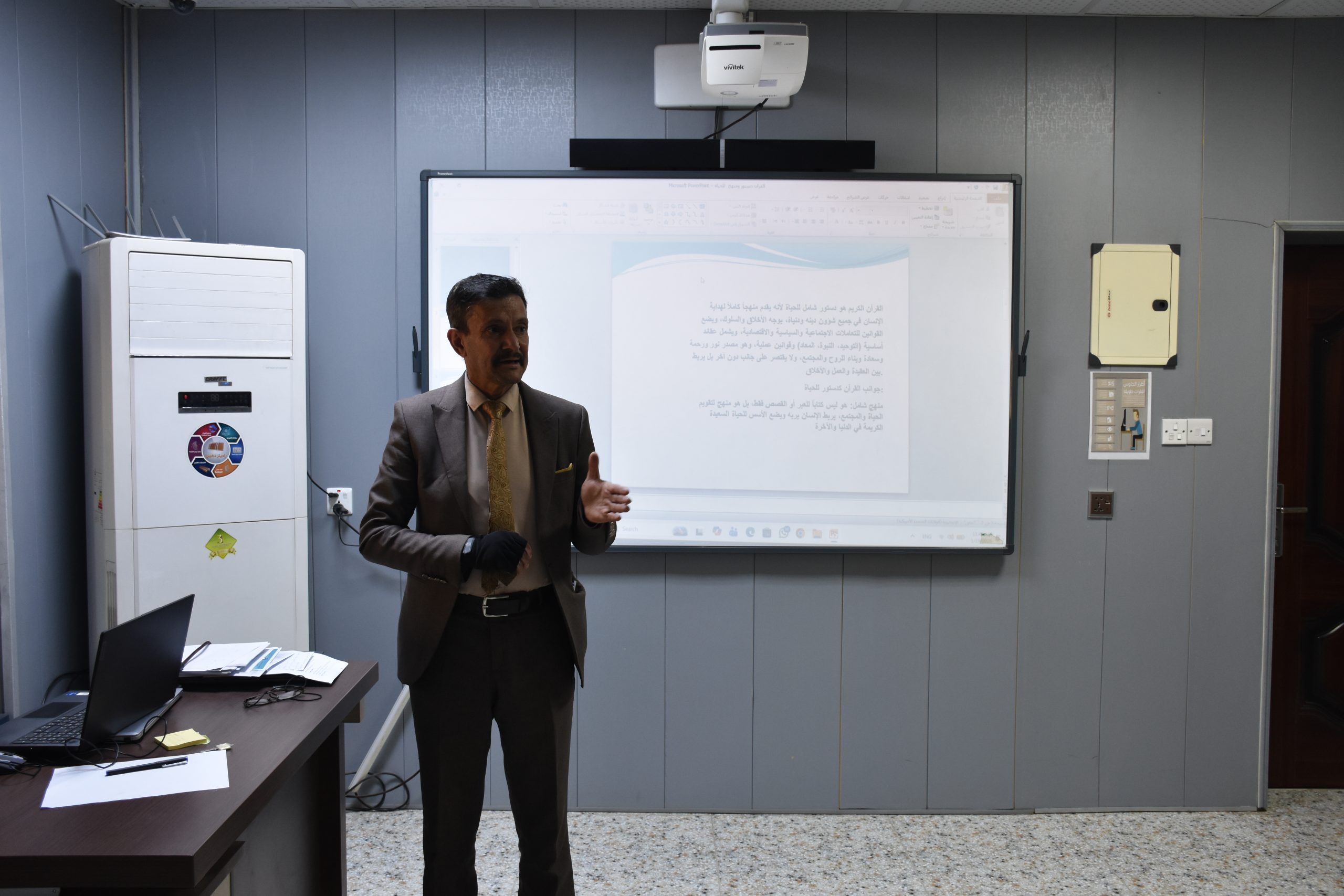 برعاية السيد رئيس الجامعة الأستاذ الدكتور تحسين حسين مبارك المحترم وبإشراف السيد عميد كلية الادارة والاقتصاد الأستاذ المساعد الدكتور نزار معن عبد الكريم المحترم اقام قسم الادارة العامة ورشة عمل بعنوان (القران الكريم دستور ومنهج للحياة) حاضر فيها الأستاذ المساعد …
