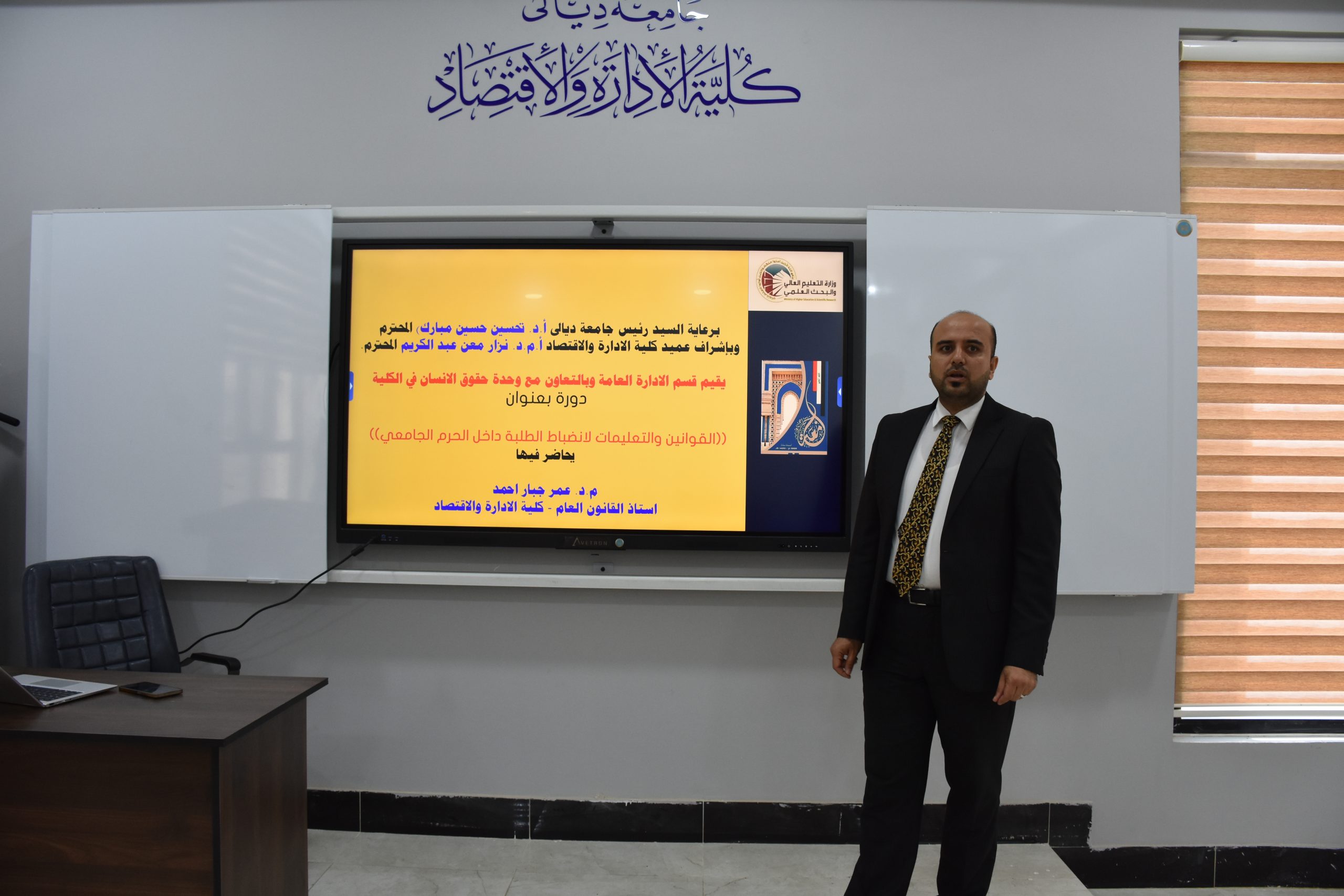 اقام قسم الإدارة العامة في كلية الإدارة والاقتصاد بجامعة ديالى وبالتعاون مع وحدة حقوق الانسان ووحدة الارشاد النفسي الجامعي دورة عملية بعنوان (القوانين والتعليمات لانضباط الطلبة داخل الحرم الجامعي) حاضر فيها المدرس الدكتور عمر جبار احمد استعرضت الدورة النصوص القانونية …