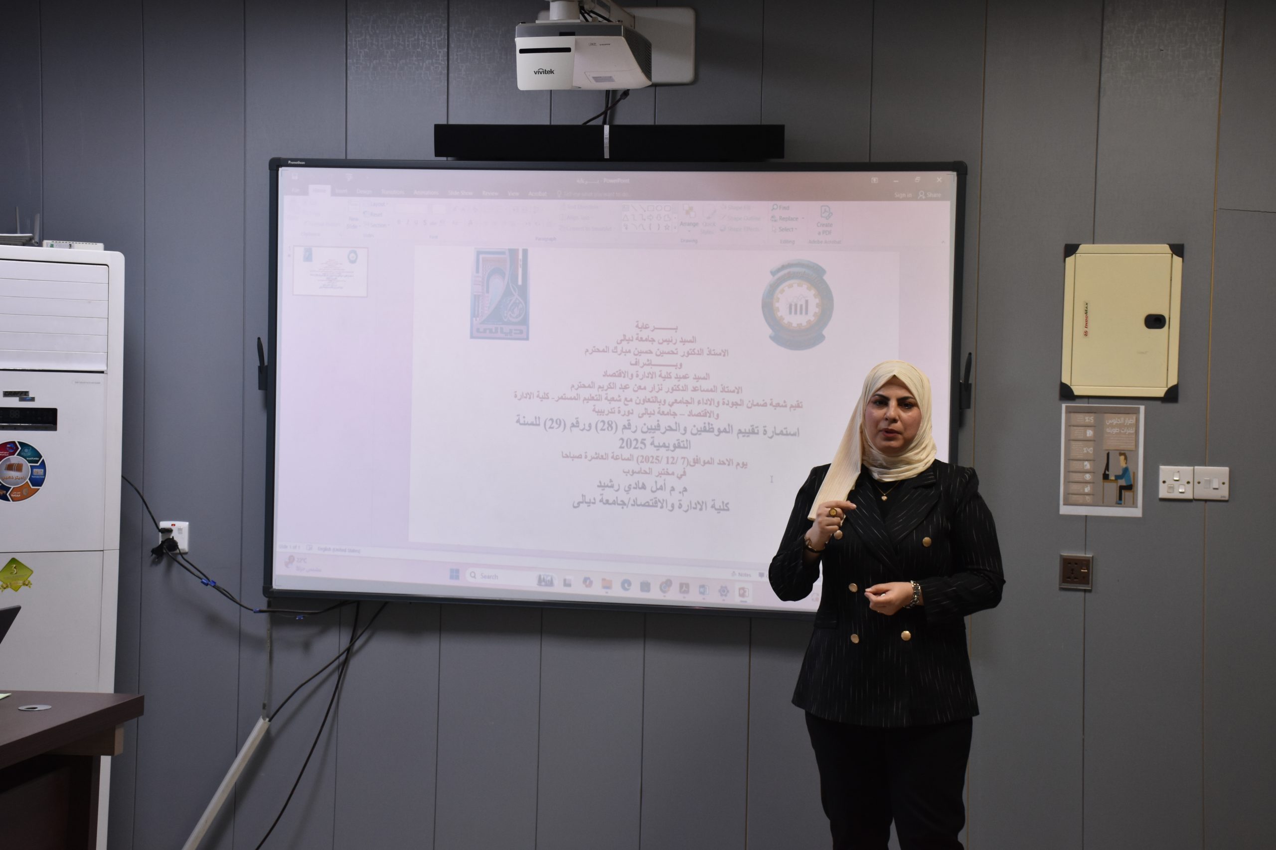 برعاية السيد رئيس الجامعة الأستاذ الدكتور تحسين حسين مبارك المحترم وبإشراف السيد عميد كلية الادارة والاقتصاد الأستاذ المساعد الدكتور نزار معن عبد الكريم المحترم اقامت شعبة ضمان الجودة والاداء الجامعي وبالتعاون مع شعبة التعليم المستمر دورة تدريبية بعنوان (استمارة تقييم …
