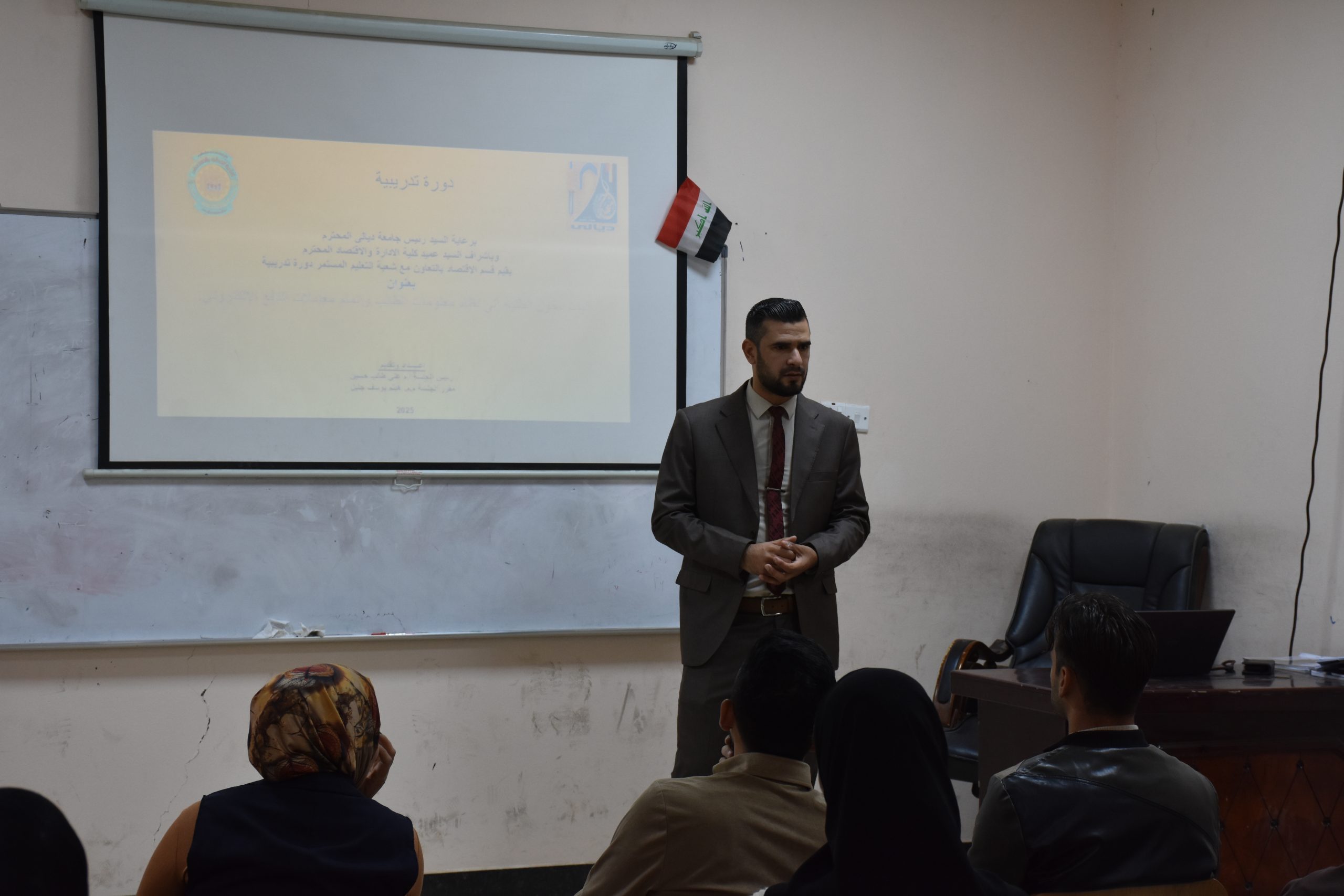 برعاية السيد رئيس الجامعة الأستاذ الدكتور تحسين حسين مبارك المحترم وبإشراف عميد كلية الادارة والاقتصاد الأستاذ المساعد الدكتور نزار معن عبد الكريم المحترم اقام قسم المحاسبة بالتعاون مع وحدة التأهيل والتوظيف والمتابعة دورة تدريبية بعنوان (استعمال الاساليب الاحصائية في تحليل …